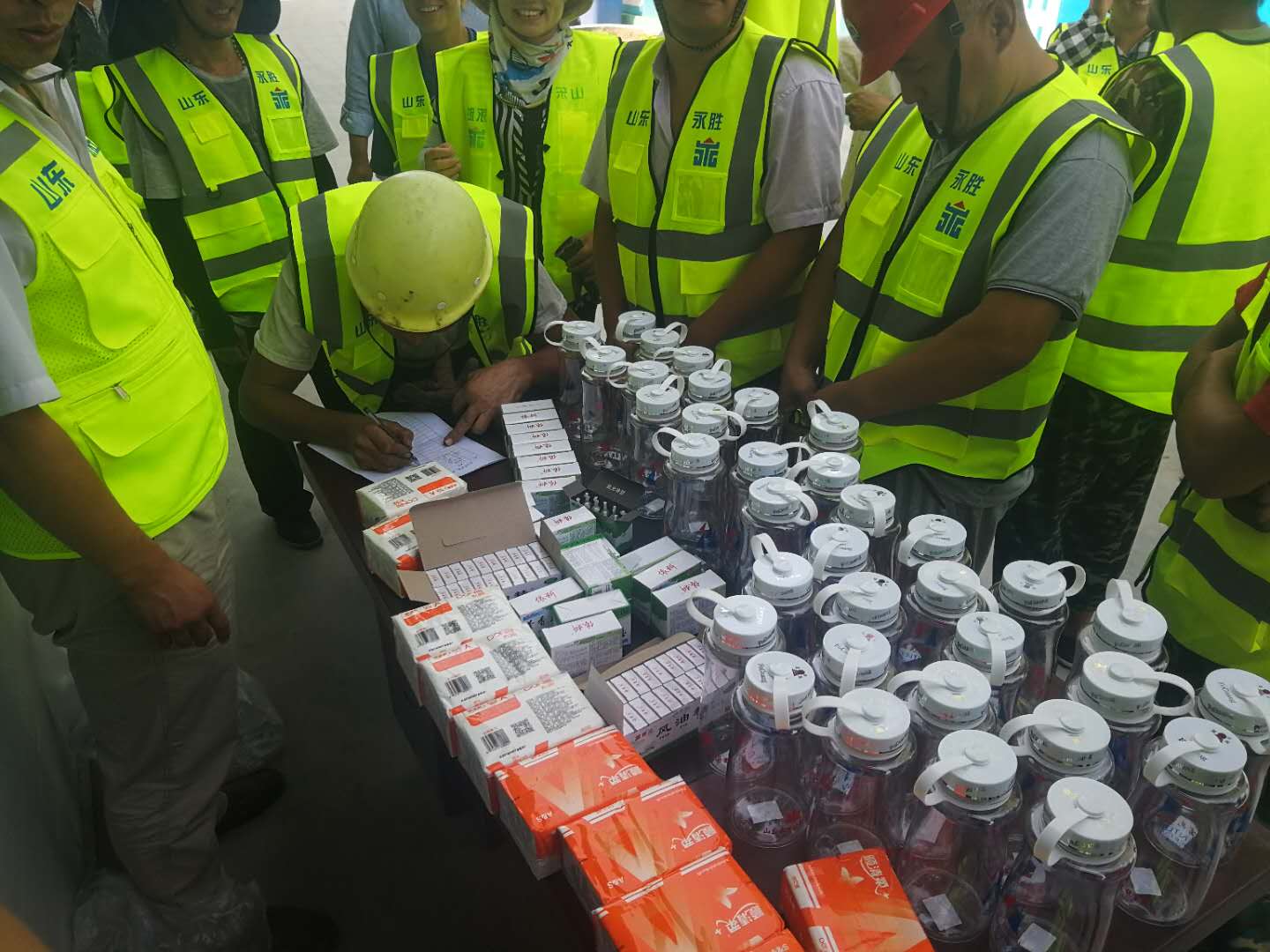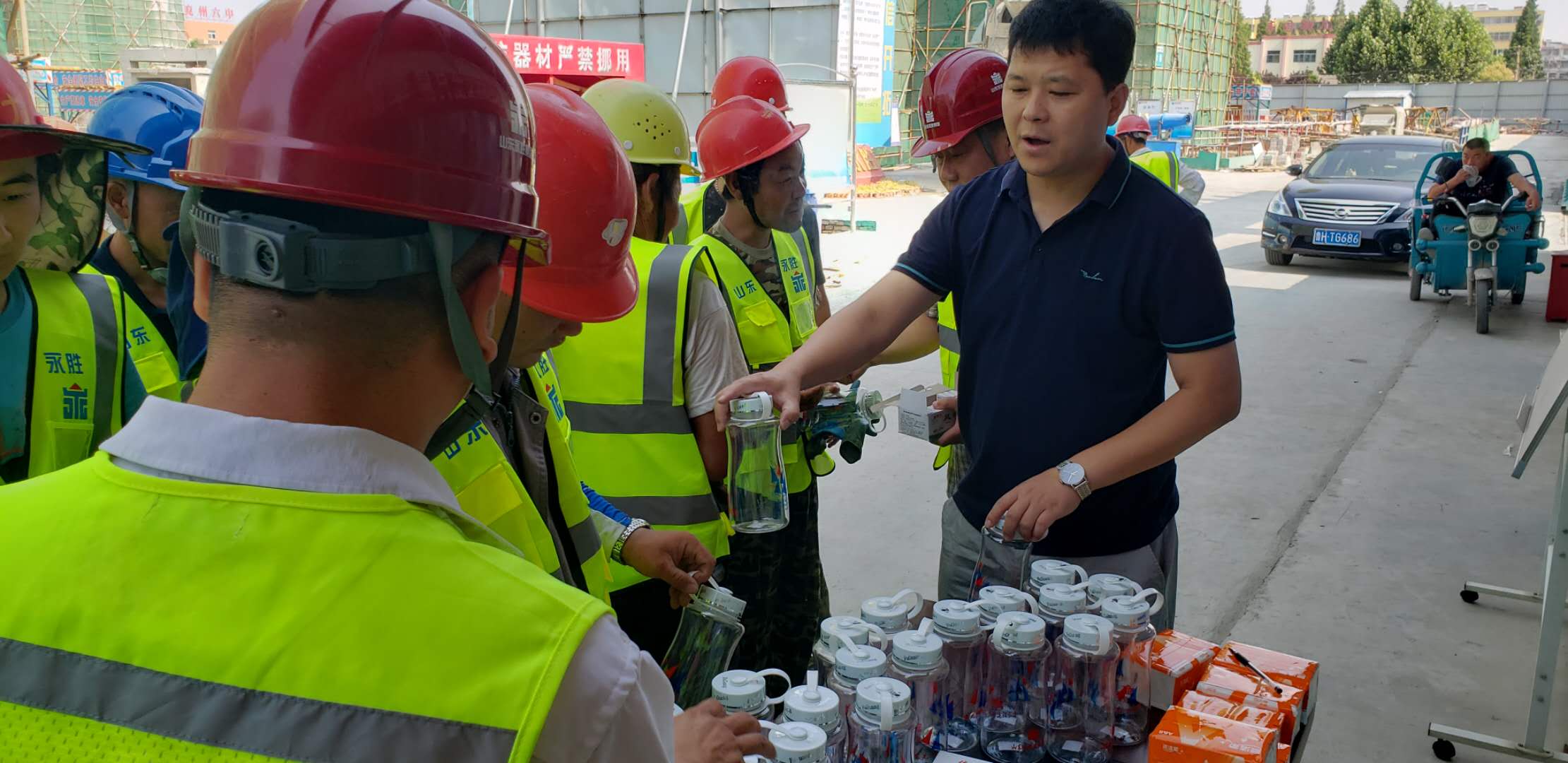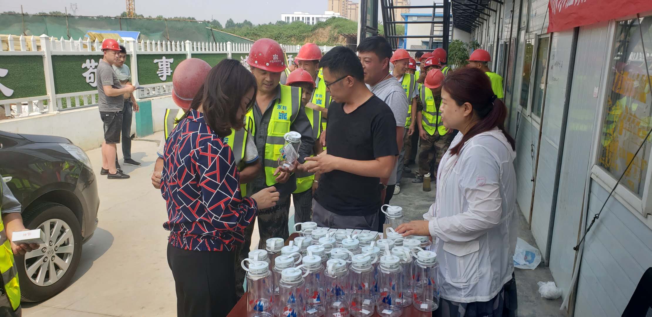 骄阳似火,酷暑难当。随着聒噪的蝉鸣,又迎来了今年的高温季节,为做好防暑降温工作,保障施工一线员工和广大农民工的健康权益,推动改善员工生产生活条件,确保一线员工和广大农民工平安度夏。6月18日、19日,集团公司施工部,代表集团公司高管层和工会,分别到所有在建施工一线,为职工发放了防暑药品、凉茶、水杯、绿豆、毛巾等防暑降温物品1000余件,把清凉送到了施工一线。