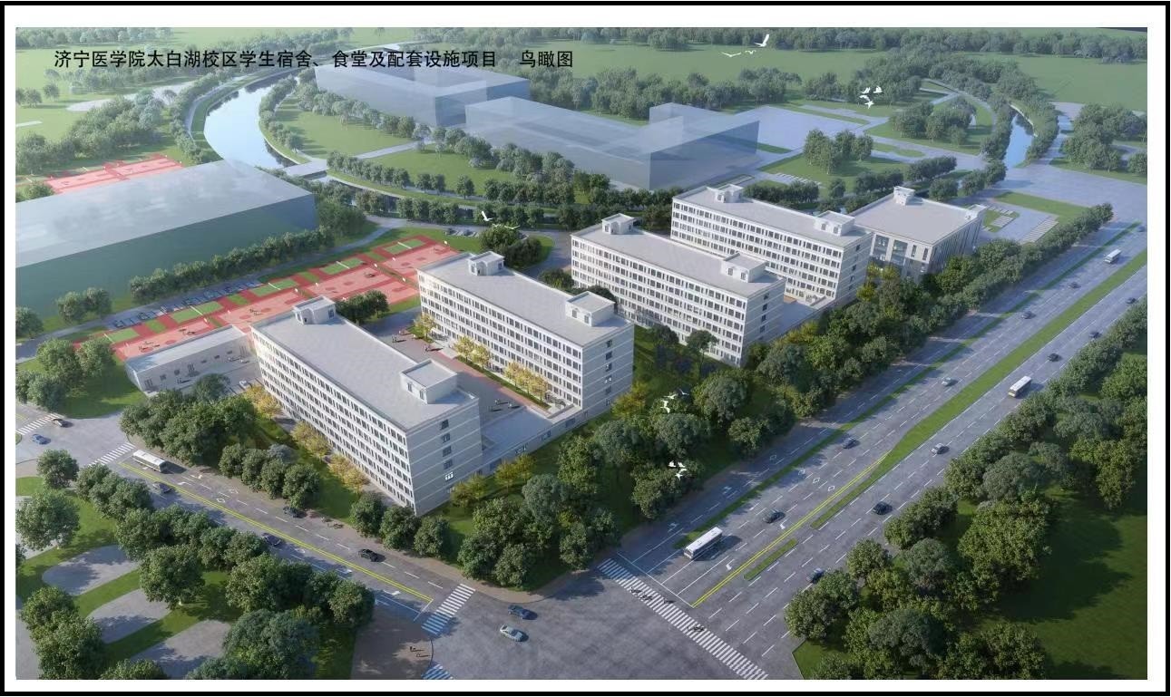济宁医学院太白湖校区学生宿舍、食堂及配套设施项目用地面积 30383平方米,总建筑面积 41026.24 平方米。拟建2栋学生公寓楼,1栋食堂,1栋配电室、空调泵房。